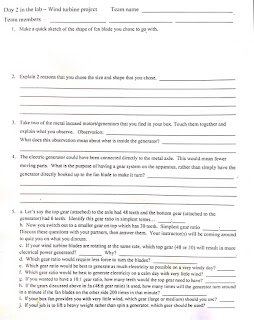 Day 2 in the lab- Wind Turbine Project